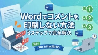 Wordでコメントを印刷しない設定を3ステップで解説!印刷設定のチェックを1つ外すだけで、本文のみをきれいに印刷できます。Windows・Mac両対応。設定しても吹き出しが消えない時の対処法や、提出前に必須の「一括削除」の手順まで。